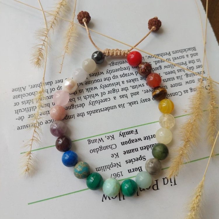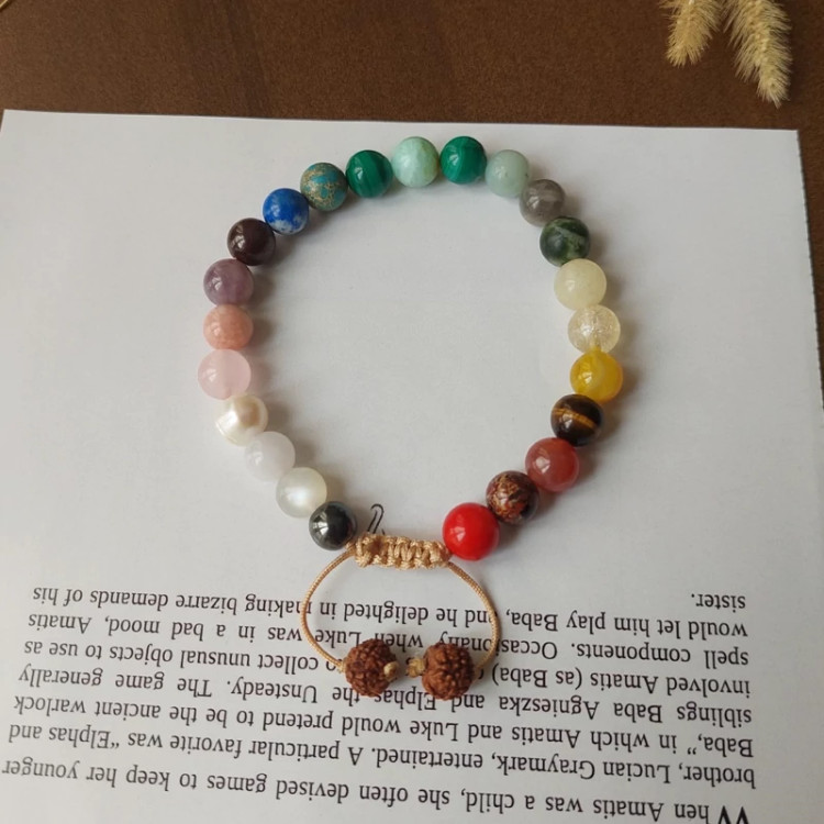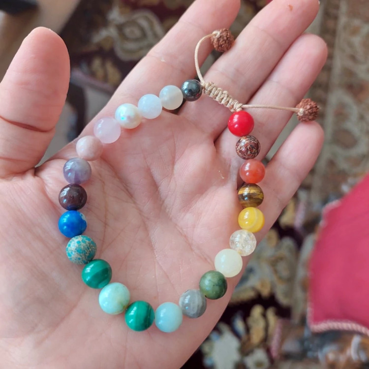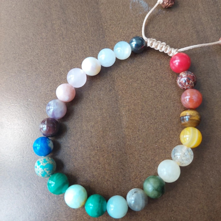 این دستبند از 23 نوع سنگ طبیعی اصل ساخته شده است. تمام سنگها درجه یک هستن. نخ دستبند از برند دندلیون می باشد گه بهترین نخ موجود در بازار می باشد. این دستبند خاصیت درمانی فوق العاده ای دارد.