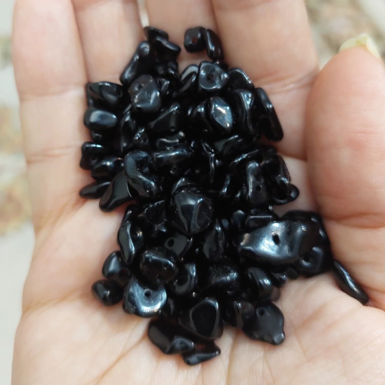 مهره سنگ آبسیدین چیپسی سوراخ دار سنگ اصل طبیعی معدنی