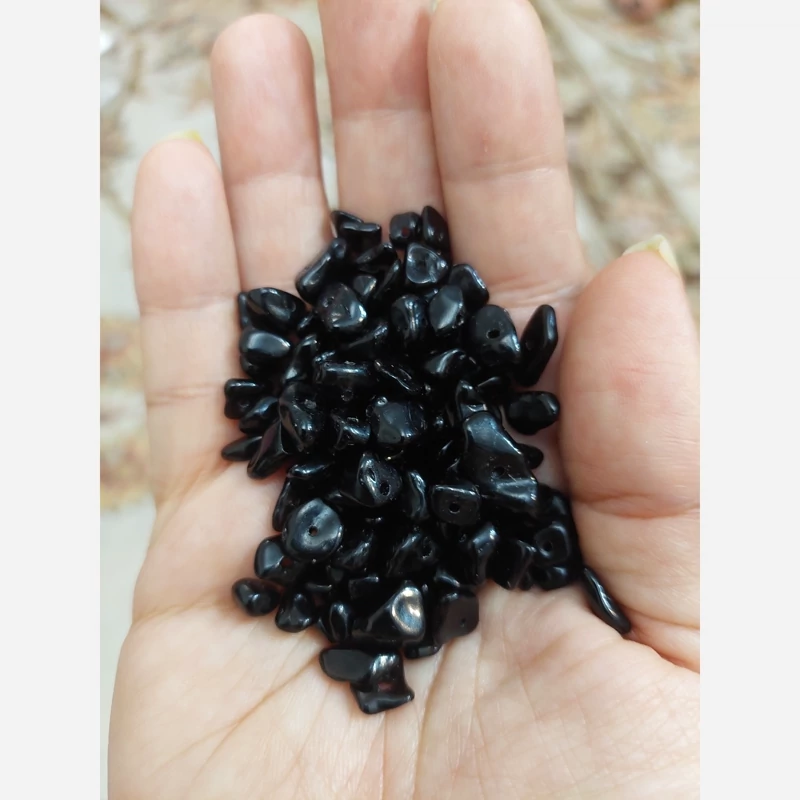 مهره سنگ آبسیدین چیپسی سوراخ دار سنگ اصل طبیعی معدنی