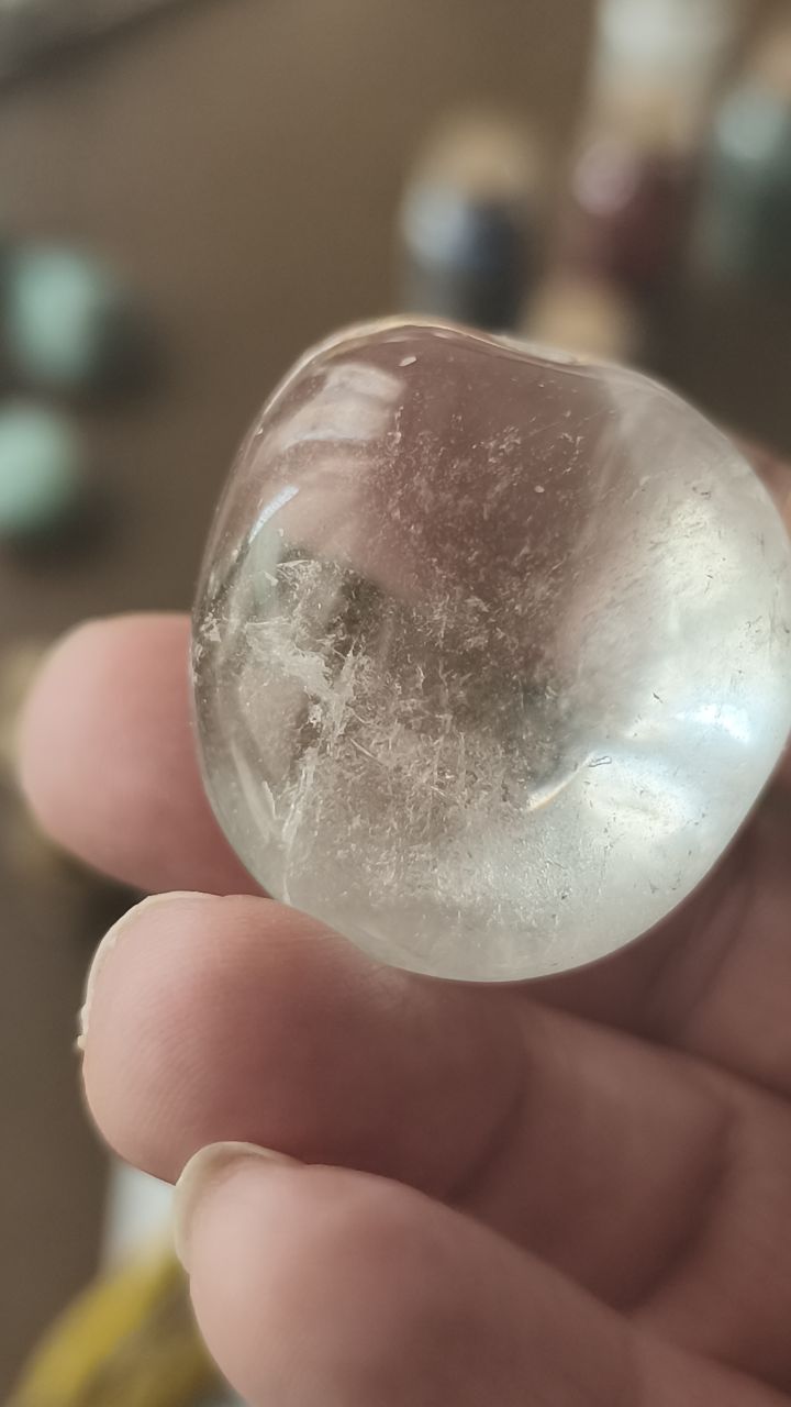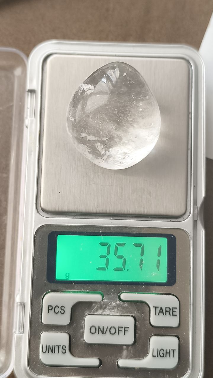 سنگ کریستال کوارتز شفاف تامبل شده ۳۵گرم اصل طبیعی معدنی