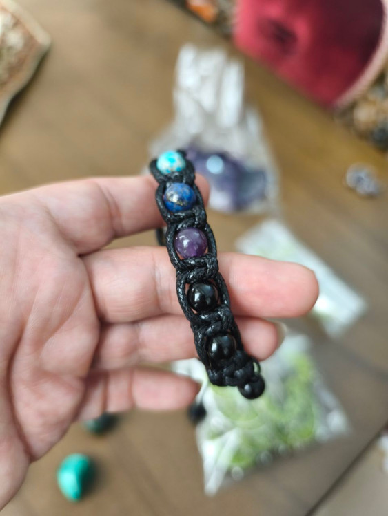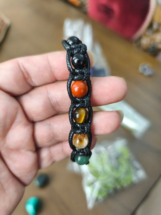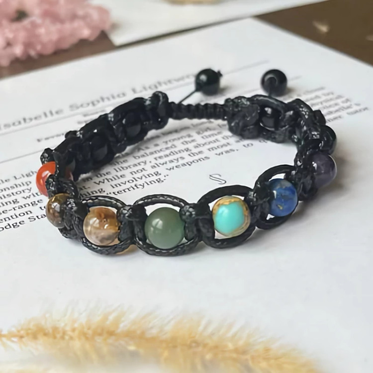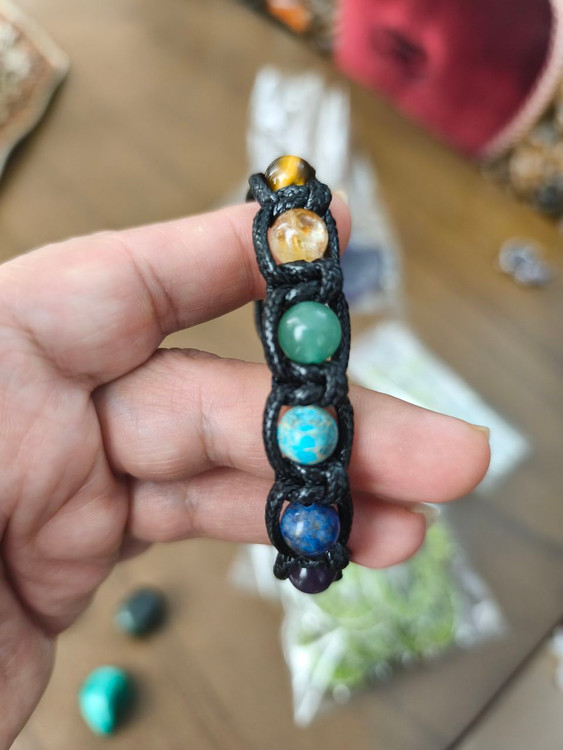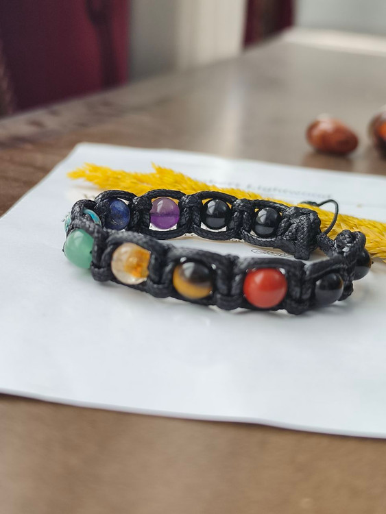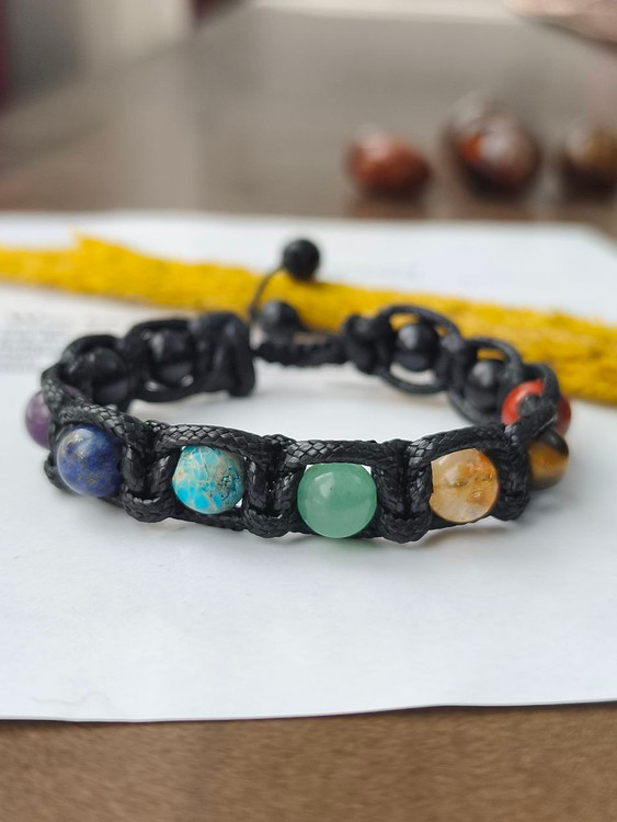 دستبند هفت چاکرا با بافت چرم سنگ طبیعی اصل