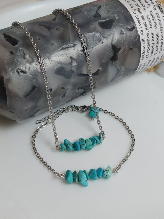 نیم ست سنگ فیروزه مصری چیپسی با زنجیر استیل رنگ ثابت