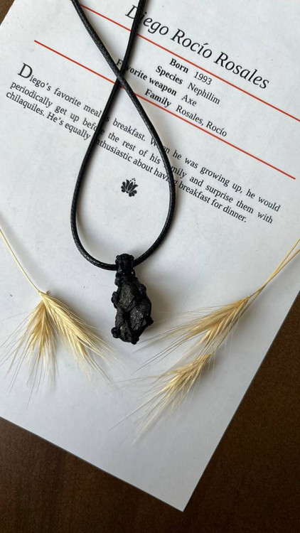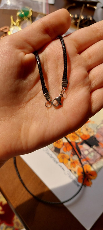 🖤 گردنبند تورمالین سیاه تراش نخورده با بافت و بند چرم