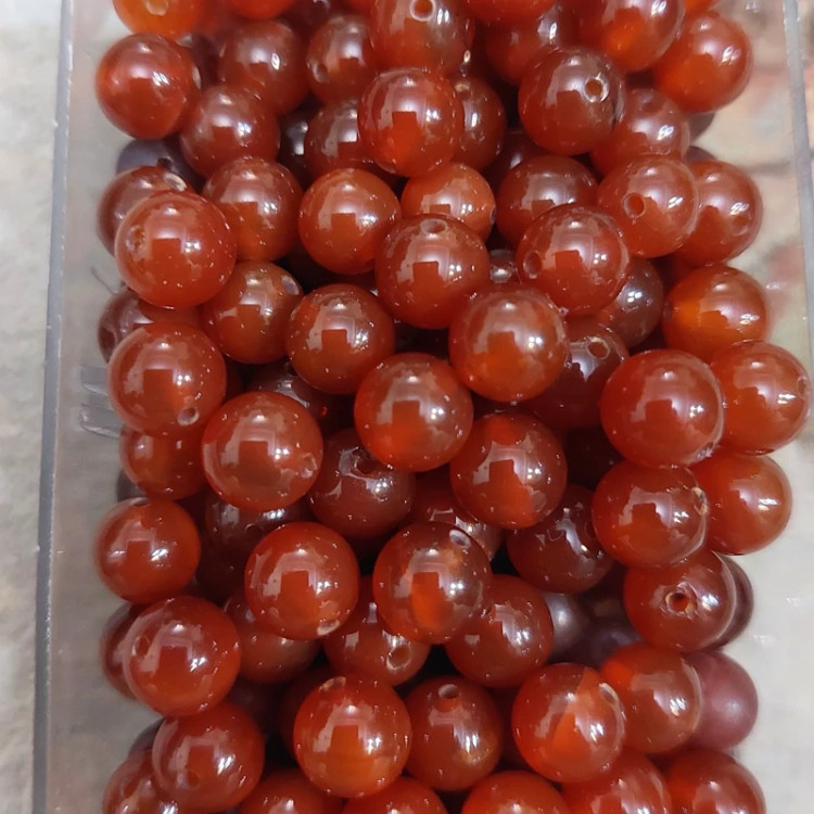 مهره سنگ عقیق قرمز سوراخ دارسایز 8 مهره گوی سنگ طبیعی عقیق سرخ آلبالویی