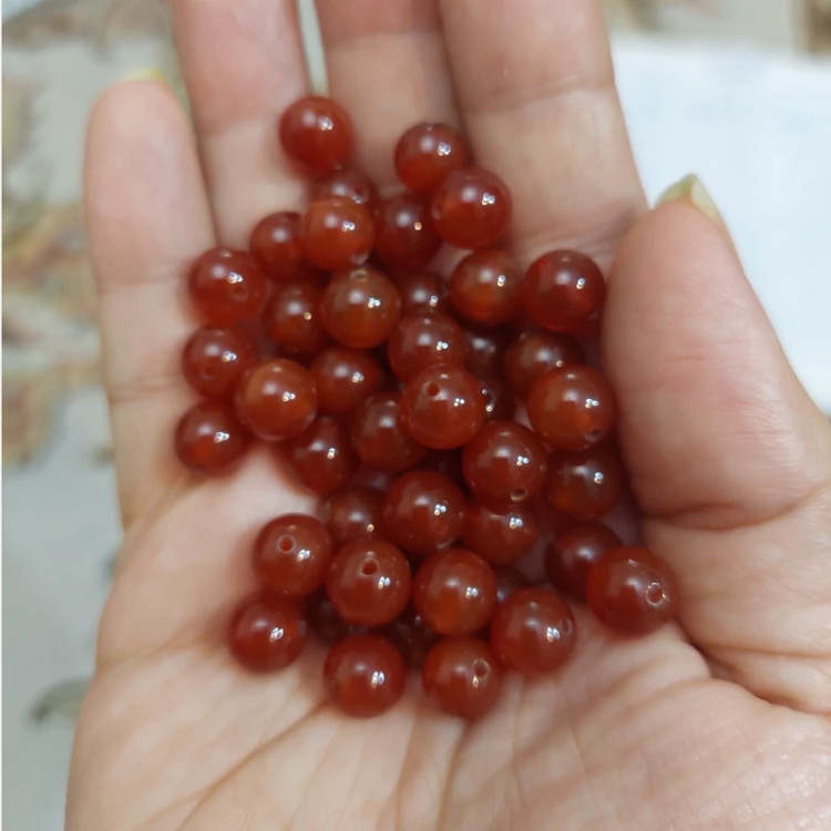 مهره سوراخ دار عقیق قرمز سنگ اصل درجه یک سایز 8 میلی متر مخصوص ساخت دستبند گردنبند انگشتر و گوشواره