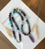 این گردنبند ویژه متولدین ماه بهمن طراحی شده و ترکیبی فوقالعاده از سنگهای قدرتمند شامل کوارتز شفاف، آکوامارین، مالاکیت، عقیق خزهای، فیروزه آفریقایی، لاجورد، کوارتز دودی، گارنت و آمیتیست است. هر سنگ با دقت انتخاب شده تا انرژیهای اصلی ماه بهمن—آرامش ذهن، خلاقیت، شهود قوی و قدرت درونی—را تقویت کند.
