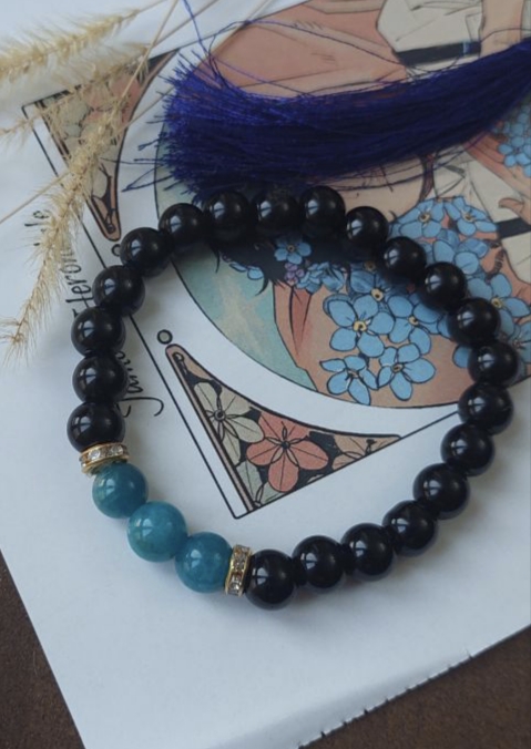 دستبند سنگ آپاتیت لبی واونیکس سیاه کشی اصل معدنی