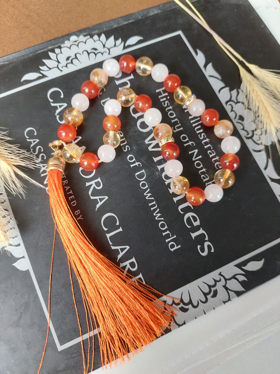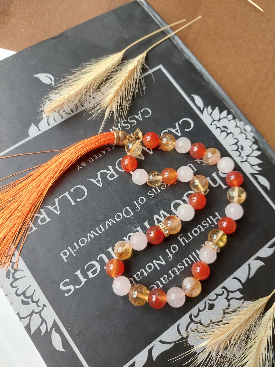 تسبیح سنگ عقیق کارنلین سیترین رزکوارتز ۳۳تایی ۸میل اصل معدنی