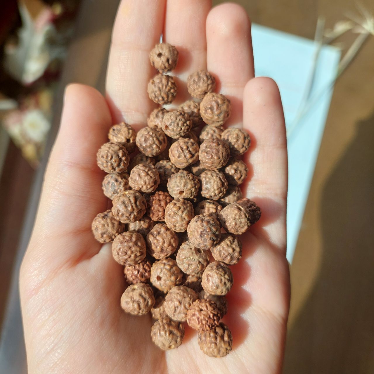 مهره هسته میوه رودراکشا هندی حنا نخورده ۸میل اصل سوراخ دار