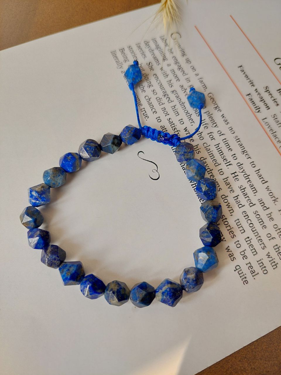 دستبند سنگ لاجورد افغان تراش استار اصل معدنی با گره کشویز